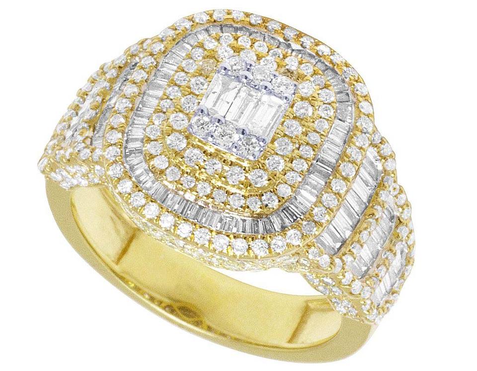 Elegant 10K Yellow Gold Rhodium Plated Hip Hop Ring with Lab Grown Diamonds Baguette & Round Cuts Iced Mens Jewelry for Party