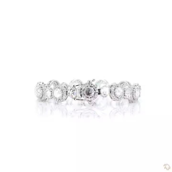 Elegant 11.75 Ct.Lab Grown Rose Cut Single & Halo Moissanite Bracelets 14K White Gold Tennis Bracelet and Bangles