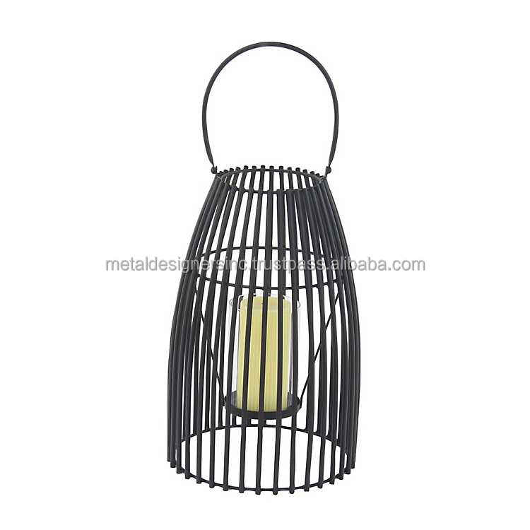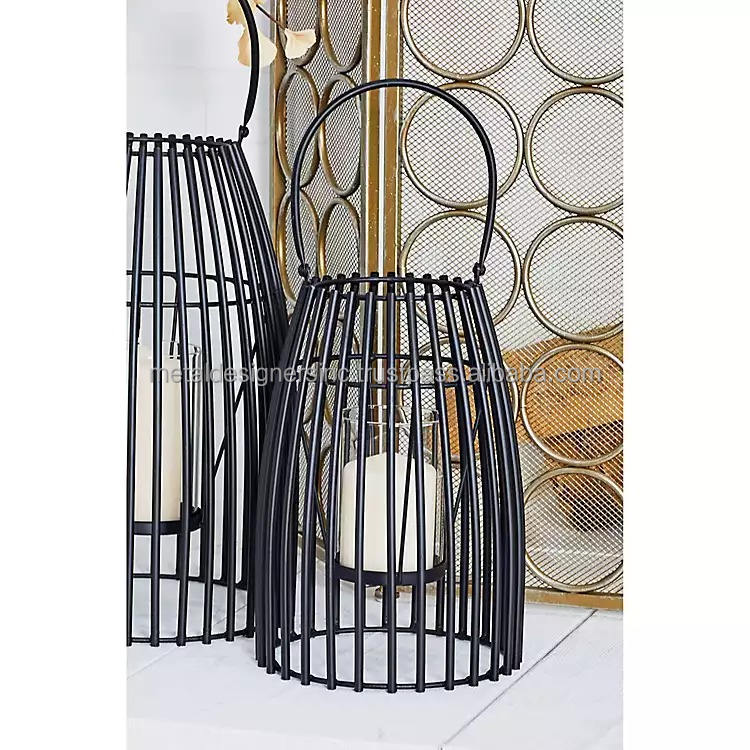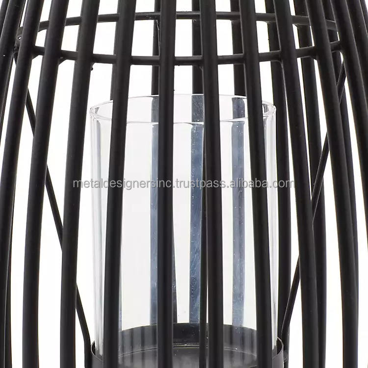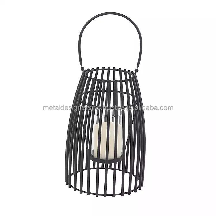 Elegant 12'' and 16'' Black Metal Wrought Iron Vertical Caged Lantern Candle Holders & Jars for Home Christmas Decorations