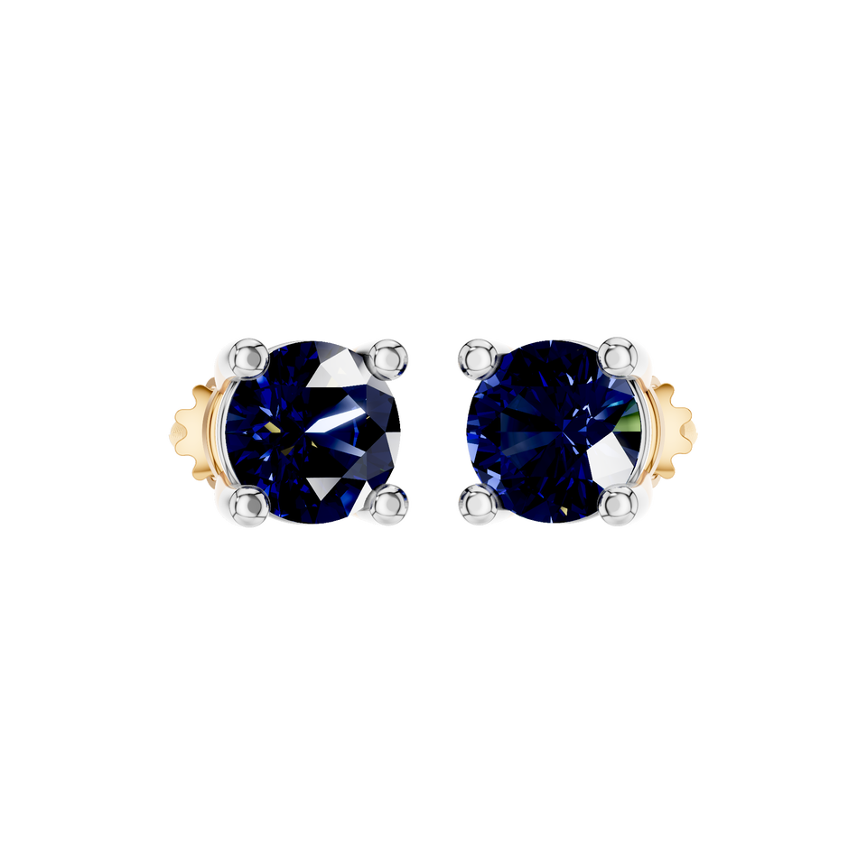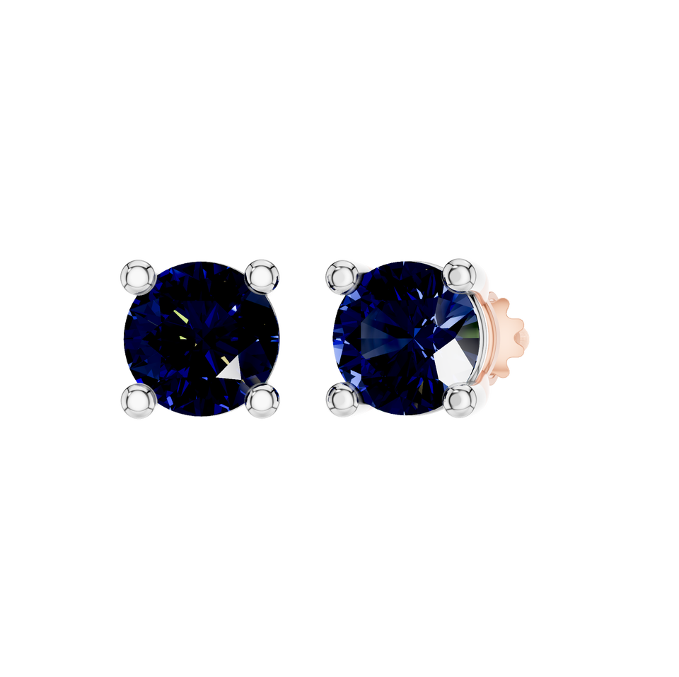 Style:Round Cut Natural Sapphire Gemstone Stud Earrings with 4 Prongs