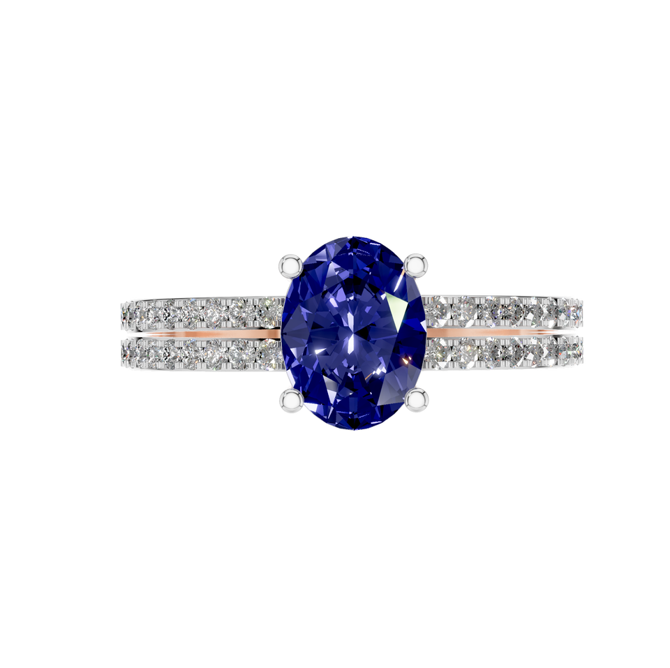 Elegant 14k Solid Gold IGI Lab Grown Diamonds Synthetic Oval Sapphire Ring Unique Cocktail Fine Jewelry Wedding Engagement Party