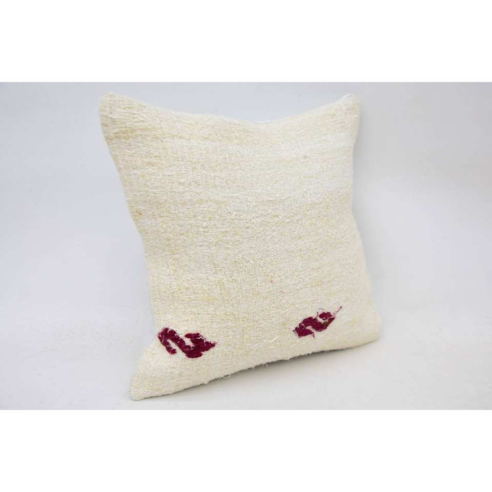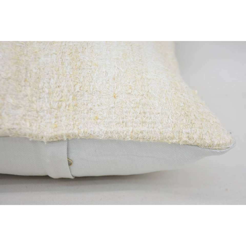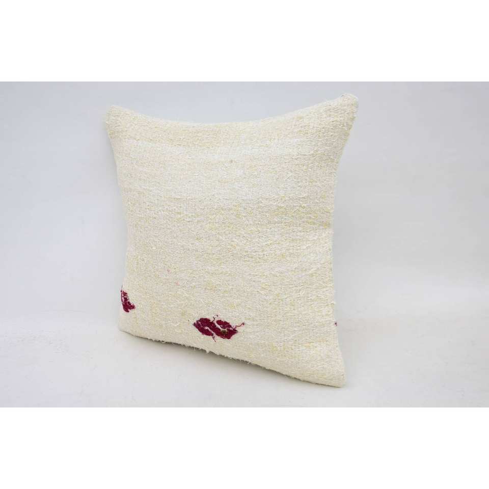 Elegant 14x14 Inch White Wool Needlepoint Accent Pillow Toile Embroidered with Vintage Pattern Woven Technics
