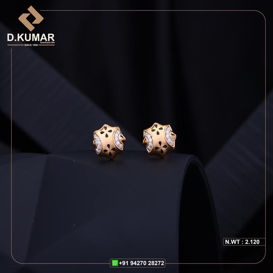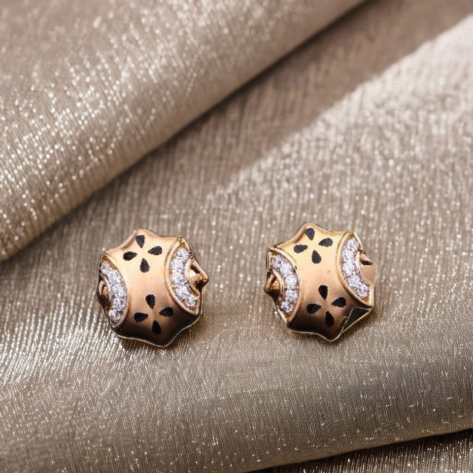 Elegant 18K Gold Dome Stud Earrings with Cutout Floral Motif and Diamond Accents Timeless Charm
