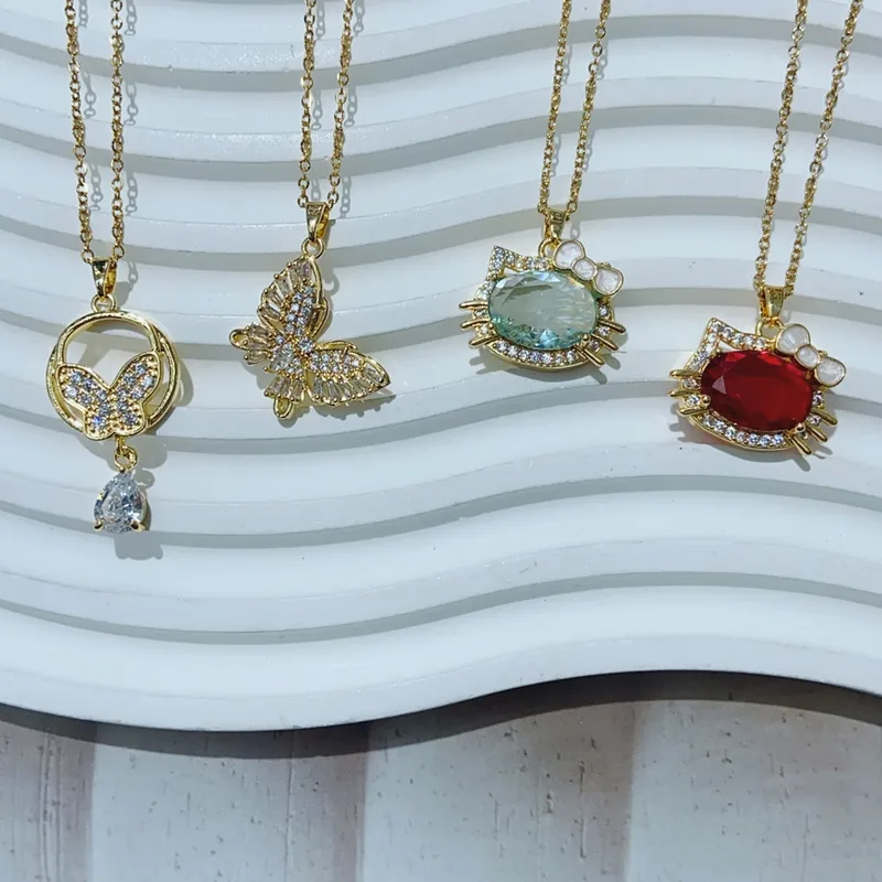 Elegant 18K Gold Plated 304 Stainless Steel Vacuum Electroplating In Furnace Butterfly Cat Zircon Pendant Necklace for Women