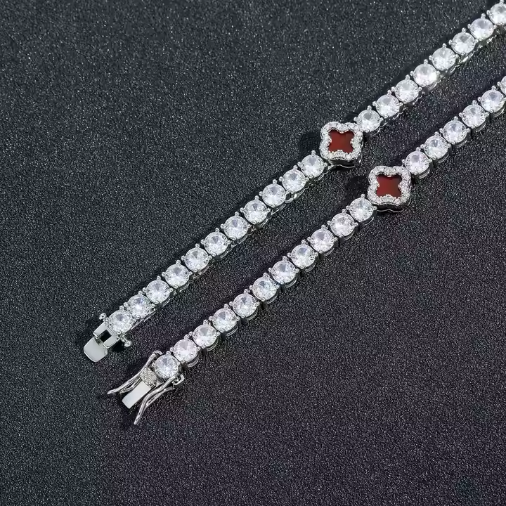 Elegant 20-Inch Tennis Chain with 4 Leaf Shape Moissanite Diamonds Yellow Gold 10K Gold Silver Plating Gift for USA