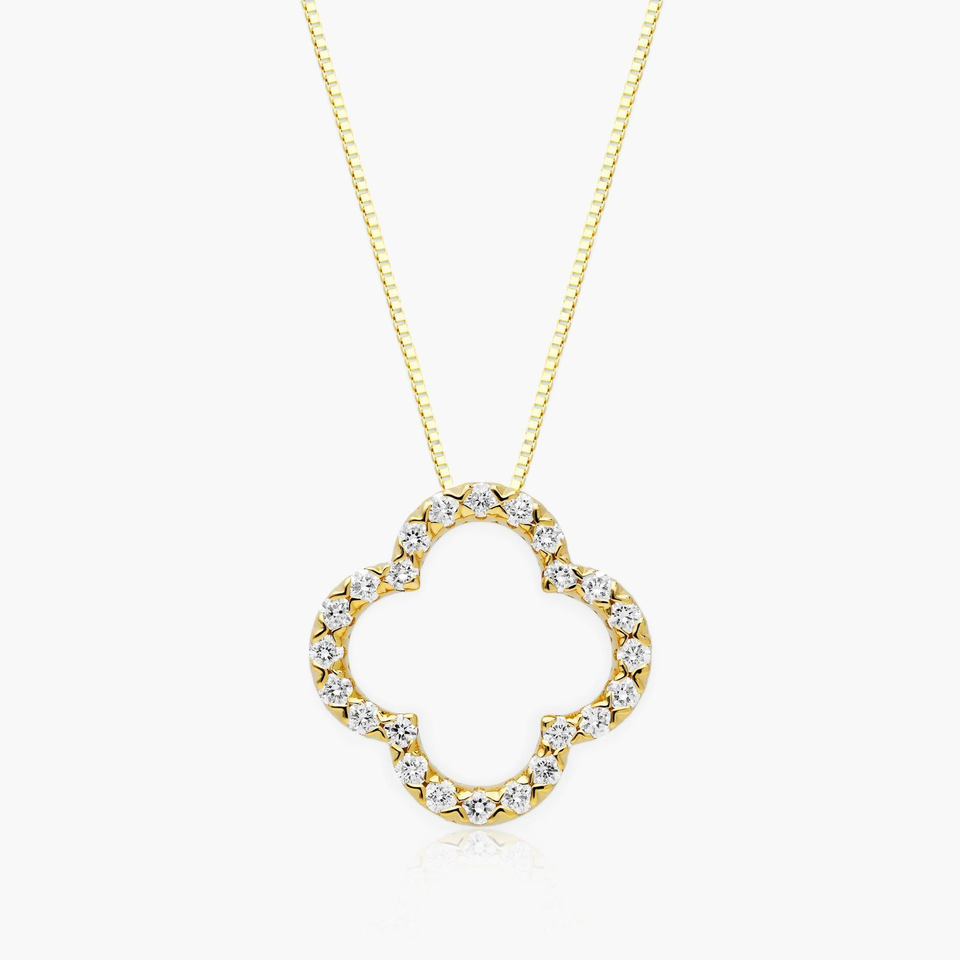 Elegant 3 mm Moissanite Round Diamond Clover Necklace with Iced Out Detail 10K Gold/Silver Link Chain for Layering or Solo Wear