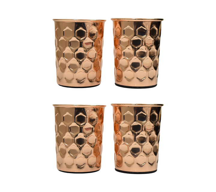 Elegant 300ml Hammered Pure Copper Tumblers for Party & Ayurveda Healthy Drink Cups for Water & Other Beverages