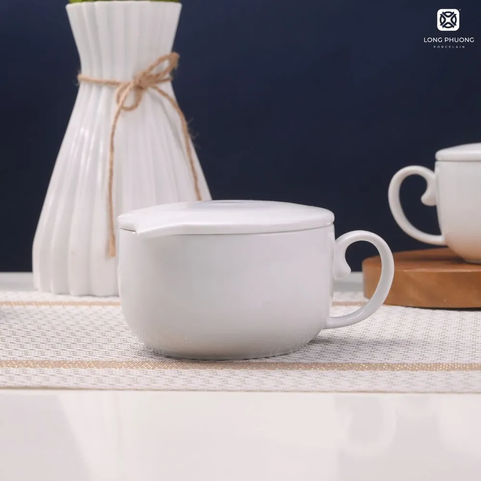 Elegant 306ml Ceramic Mug with Lid-Perfect for Morning Cereal, Coffee, Tea & More | Microwave Safe, Stylish Design