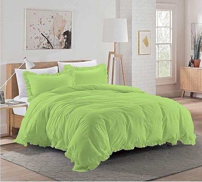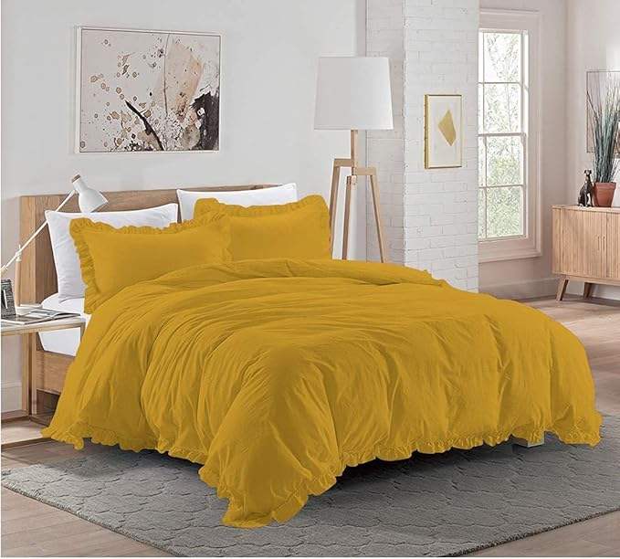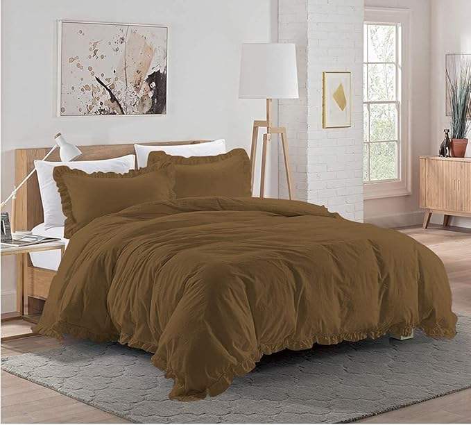 Elegant 3Piece Egyptian Cotton Duvet Cover Set Ruffle Frilled with Button Closure & Corner Ties Bedding for Stylish Bedrooms