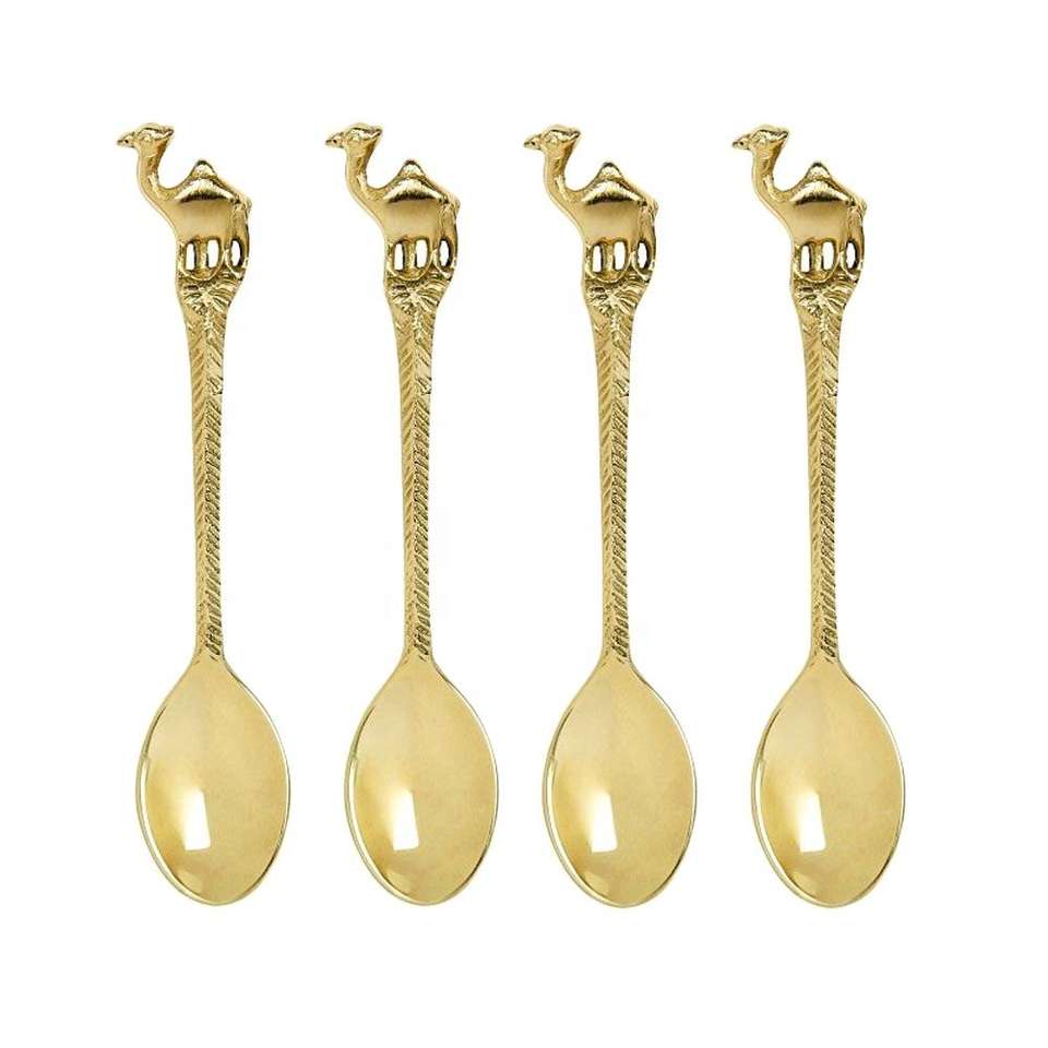 Elegant 4 Pcs Stainless Steel Flatware Set With Golden Camel Handles Gold Plated Wedding Cutlery in American Style