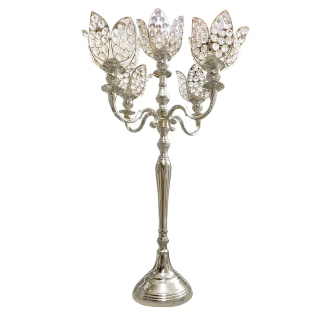 Elegant 5-Arm Lotus Crystal Metal Candlestick Holder for Home Holidays Easter Christmas Celebrations and Other Occasions