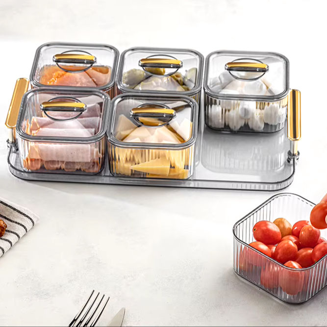 Elegant 6-Piece Breakfast Set Transparent Clear Handle Lids Plastic Airtight Eco-Friendly 1-3L Capacity Food Storage Container