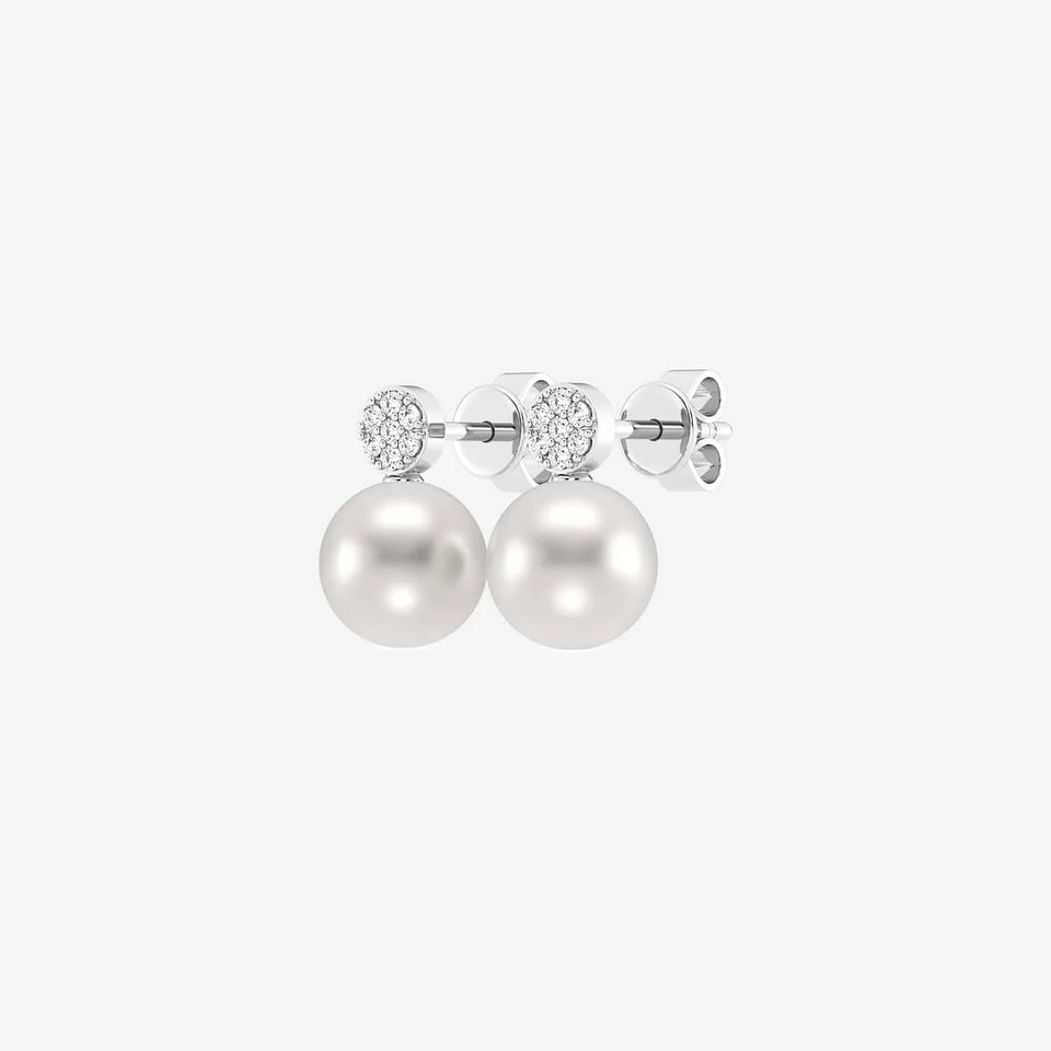 Elegant 7.5 8.0 Mm Cultured Freshwater Pearl And 1 10 Ctw Lab Grown Diamond Stud Earrings With Timeless Sparkle Ethical Fine