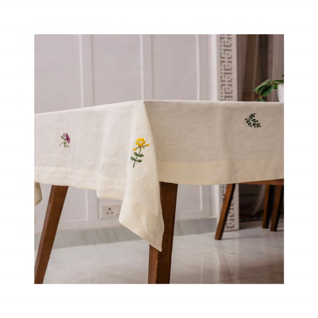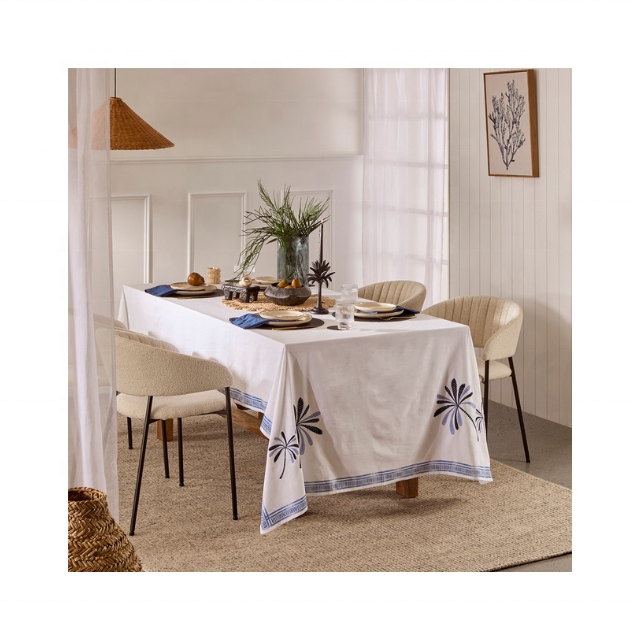 Elegant 70x120 Inches GOTS Certified Embroidered Chikoo Tablecloth Luxury 100% Cotton Creating Stunning Table Settings for Event
