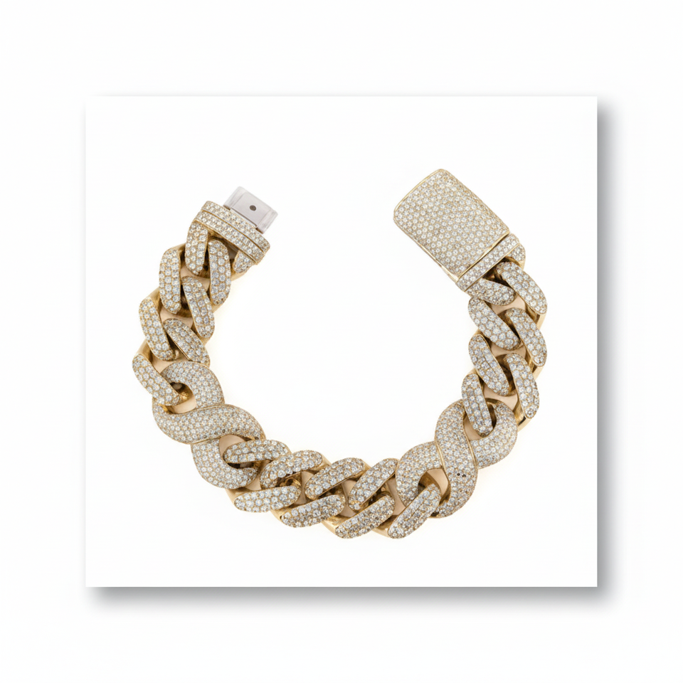 Elegant 8x8 Moissanite VVS1 Lab Gem Wedding & Gift Idea Sterling Silver & Gold Charm Bracelet & Bangle Set 30Gm Tennis Style