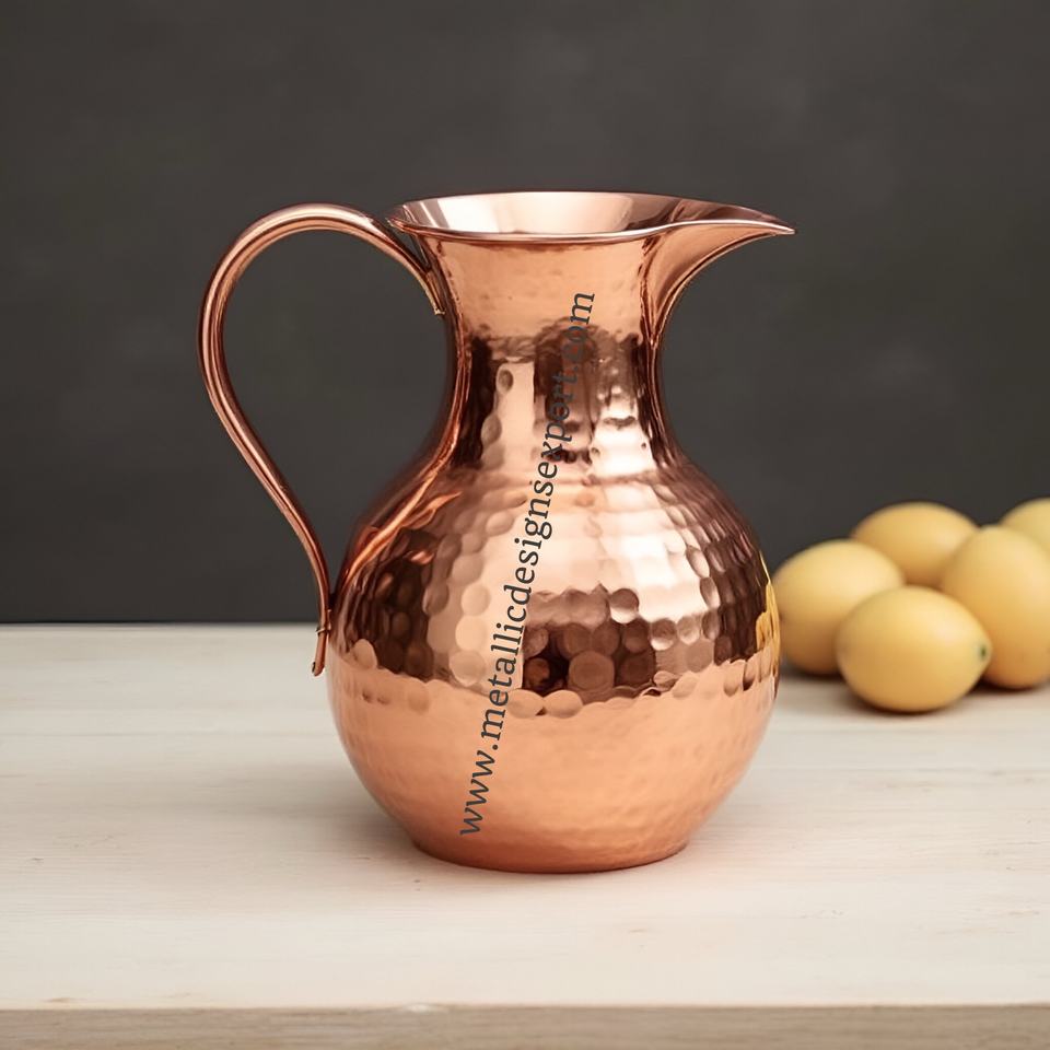 Elegant 900ml Hammered Copper Water Pitcher Handcrafted Vintage Metal Jug with Rustic Tableware for Drinking Home Decor