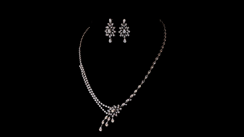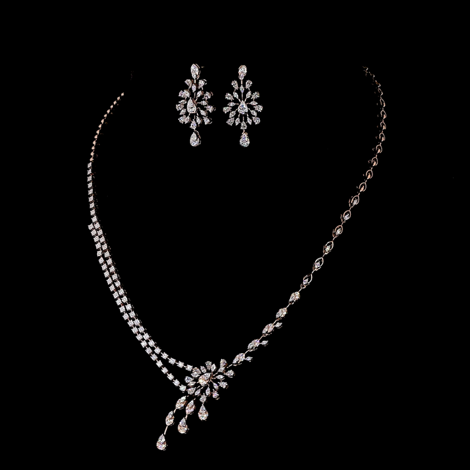 Elegant 925 Silver Bridal Necklace Set with Lab Grown Diamonds | Designer Wedding Jewelry | Bridal Jewelry Supplier