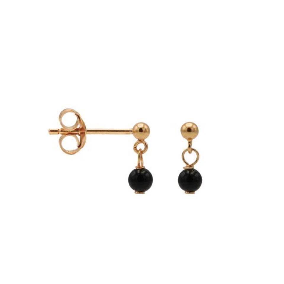 Elegant 925 Sterling Silver 14K Gold Plated Drop Earrings with Dot Onyx Gemstone Bezel Setting Stud Earrings Pearl Main Stone