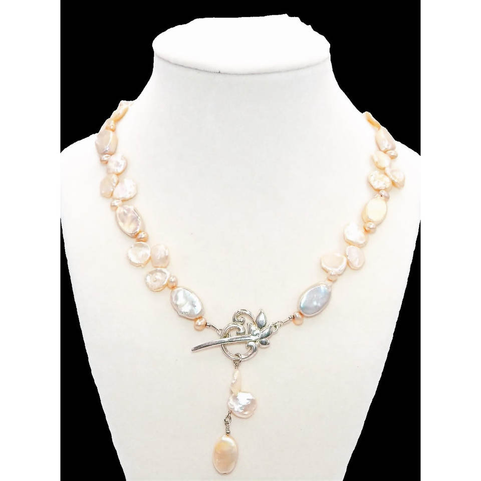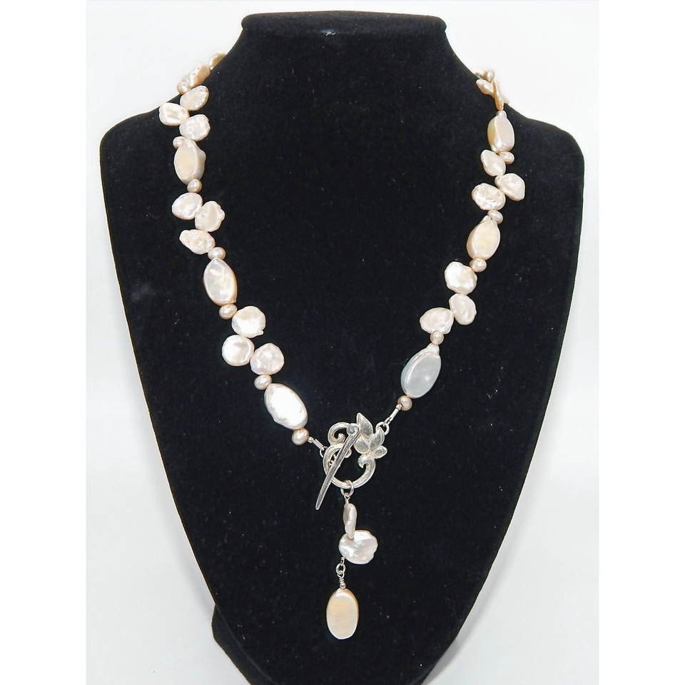 Elegant .925 Sterling Silver AA Baroque Creamy Pearl Necklace with Lavalier Premium Quality Pearl Jewelry