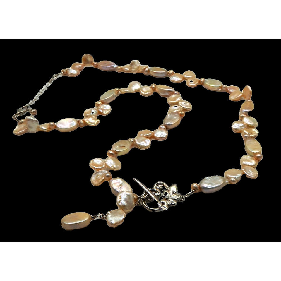 Elegant .925 Sterling Silver AA Baroque Creamy Pearl Necklace with Lavalier