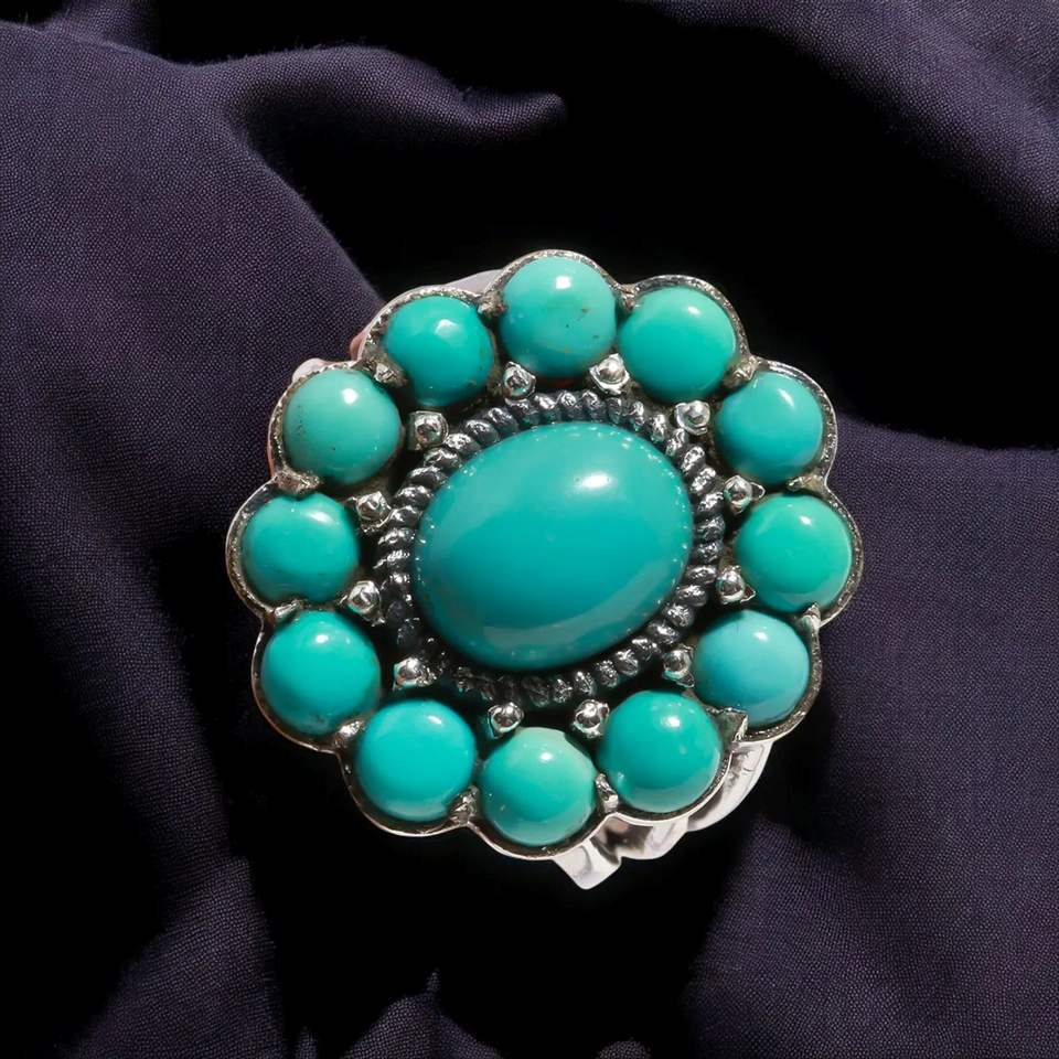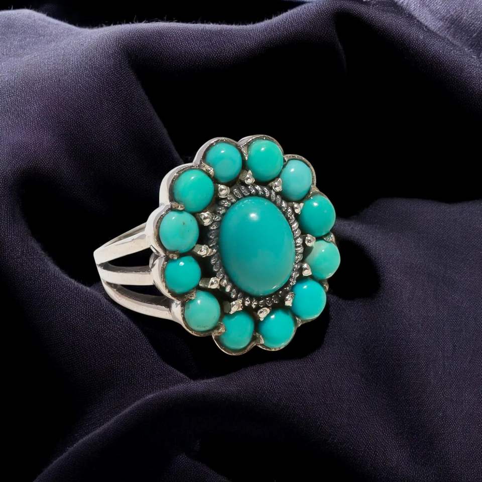 Elegant 925 Sterling Silver Classic Diamond Cut Turquoise Gemstone Ring Rare for Wedding Engagement Anniversary Party Gift
