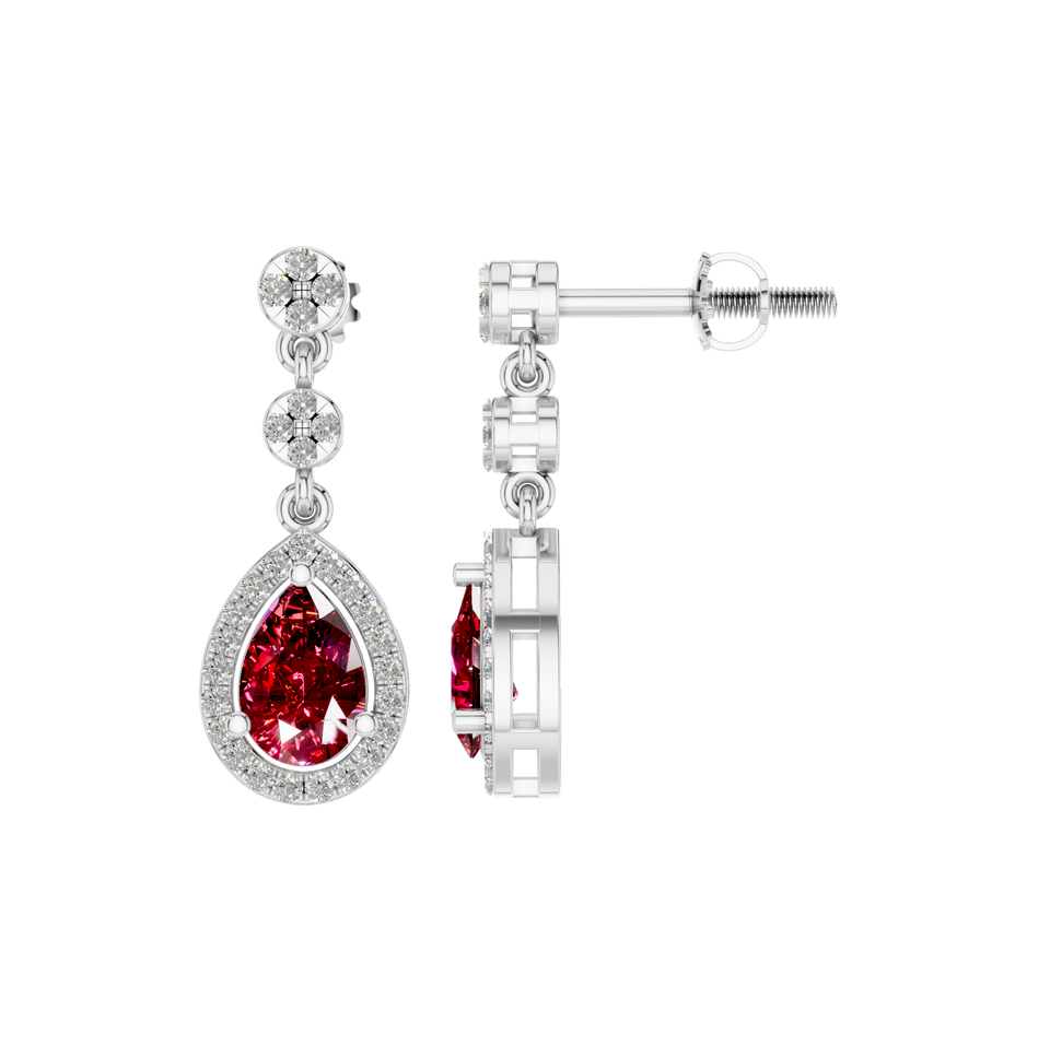 Style:Elegant Natural Pear-Cut Red Ruby Earrings with Diamond Halo