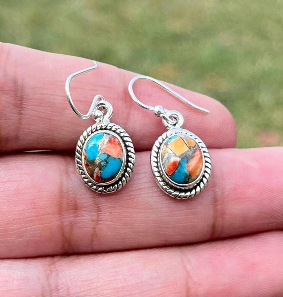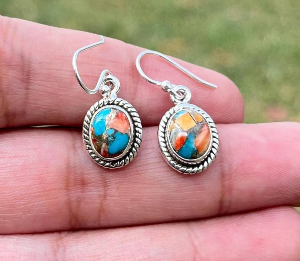 Elegant 925 Sterling Silver Drop Earrings Oyster Copper Turquoise Gemstone for Engagement or Anniversary Gift