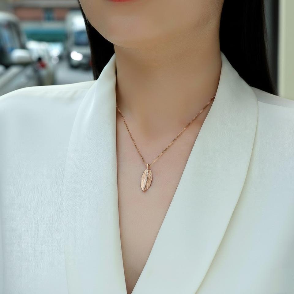 Elegant 925 Sterling Silver Moissanite Feather Pendant Necklace Women's Unique Textured Trendy Leaf Design Engagement Jewellery