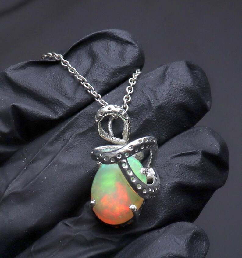 Elegant 925 Sterling Silver Necklace Natural Ethiopian Opal Pendant Women's Handmade Stone Beads Jewelry Elegant Gift Silver