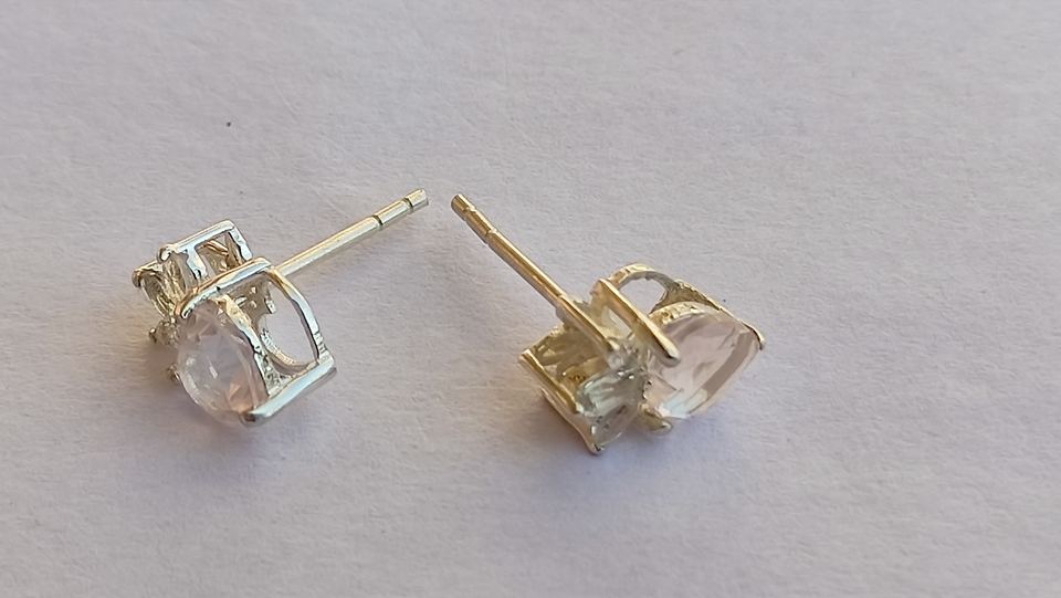 Elegant 925 Sterling Silver Pink Rose Quartz Stone Heart Shape Diamond Topaz Women Earrings Small Cute Gold Plated Party Earring