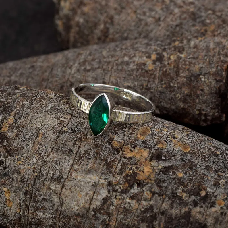 Elegant 925 Sterling Silver Ring With Green Quartz Gemstone Green Stone Stacking Ring for Women Perfect Christmas Day Gift