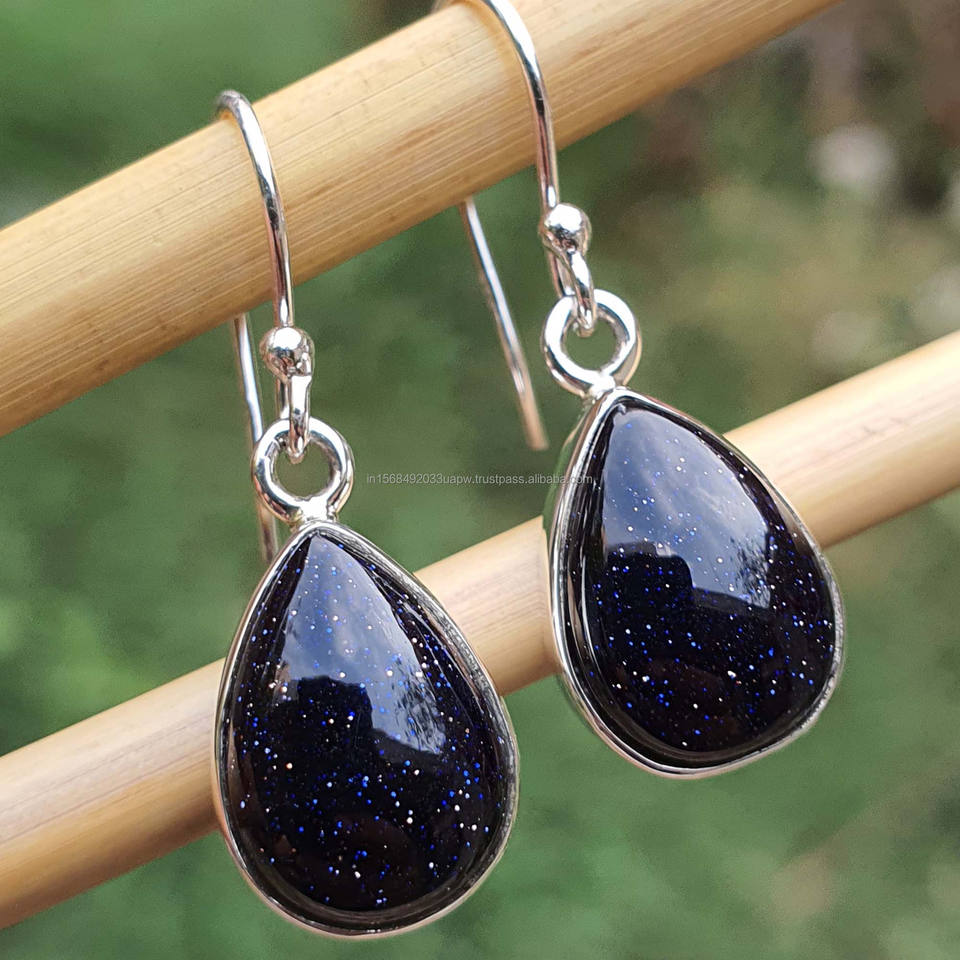 Product Name:Blue Goldstone 925 Sterling Silver Dangle Drop Earrings