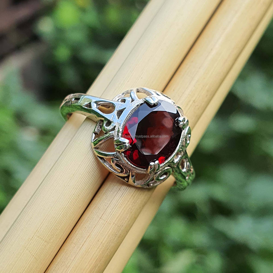 Elegant 925 Sterling Silver Women's Engagement Ring Classic Filigree Design Oval Cut Natural Garnet Red Stone Fine Wedding Gift