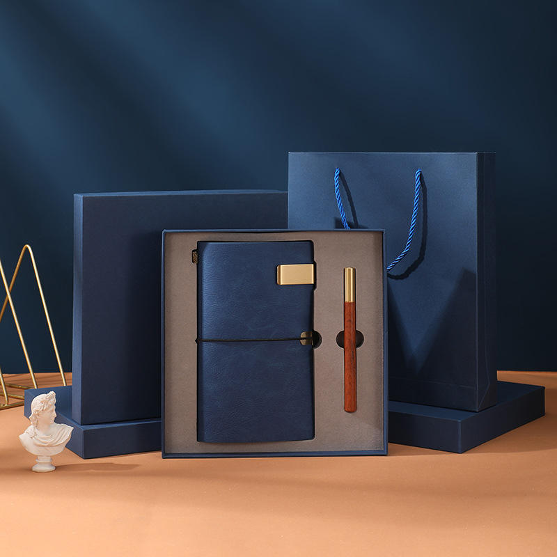 Elegant A6 Business Notebook Set Gift Box Leather Journal Portable Saddle Stitching Loose Leaf Office Stationery