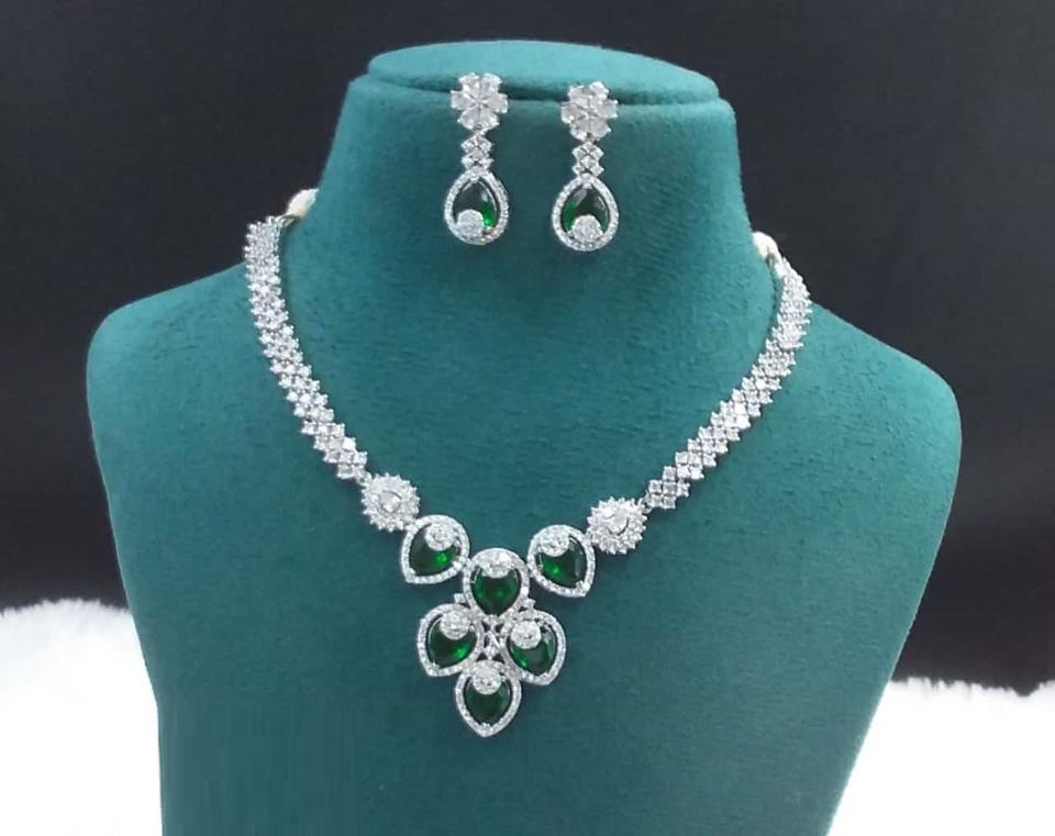 Elegant AD Necklace and Earrings Set Brass Jewelry for Christmas Gifts and Holiday Celebrations High Quality and Price
