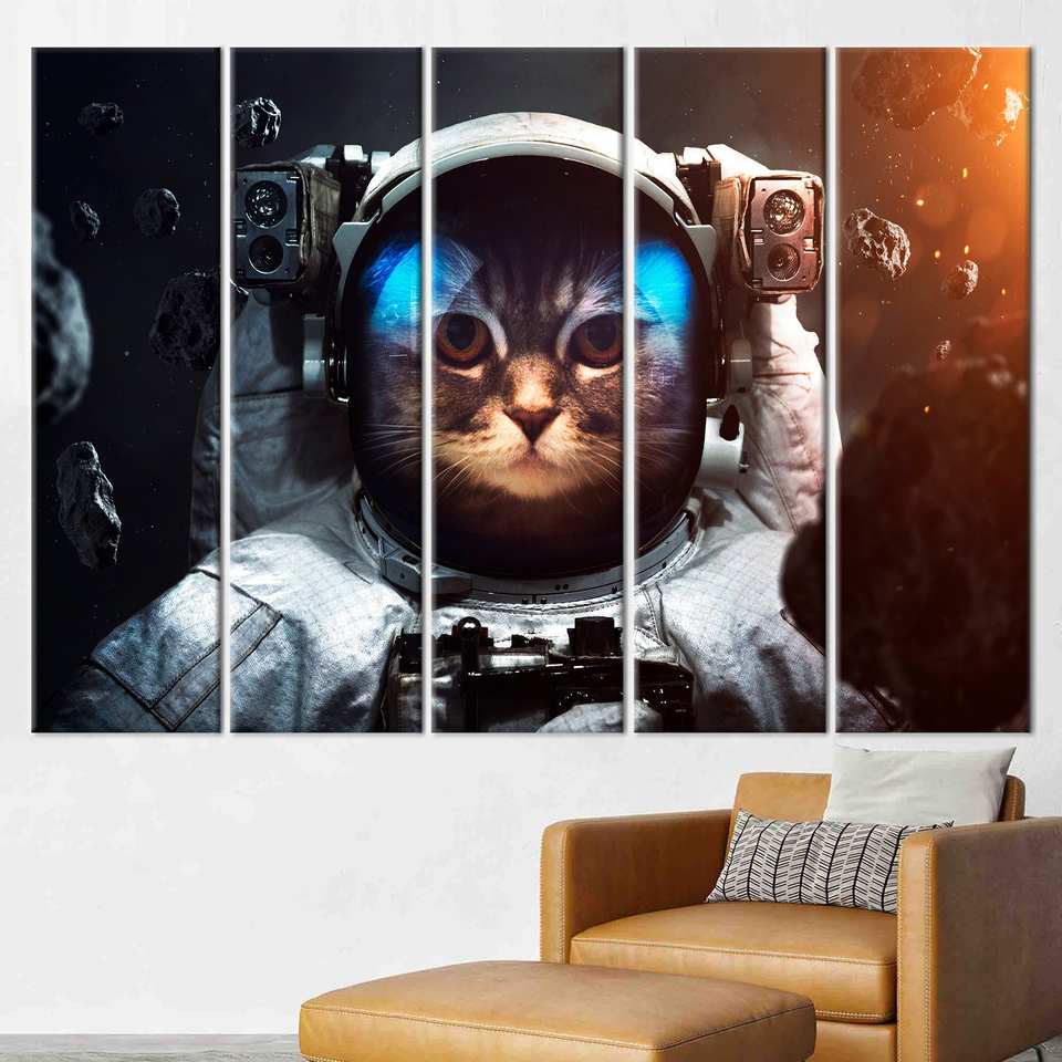Elegant Abstract Cat Canvas Print: Modern Wall Art for Boys Room,5P:Gallery Wrapped