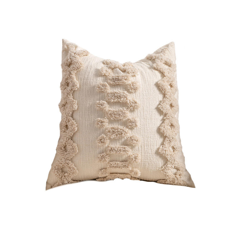 Elegant Abstract Geometric Cotton Linen Pillow Cases Square Handmade Boucle Yarn Edge For Hotel Decor