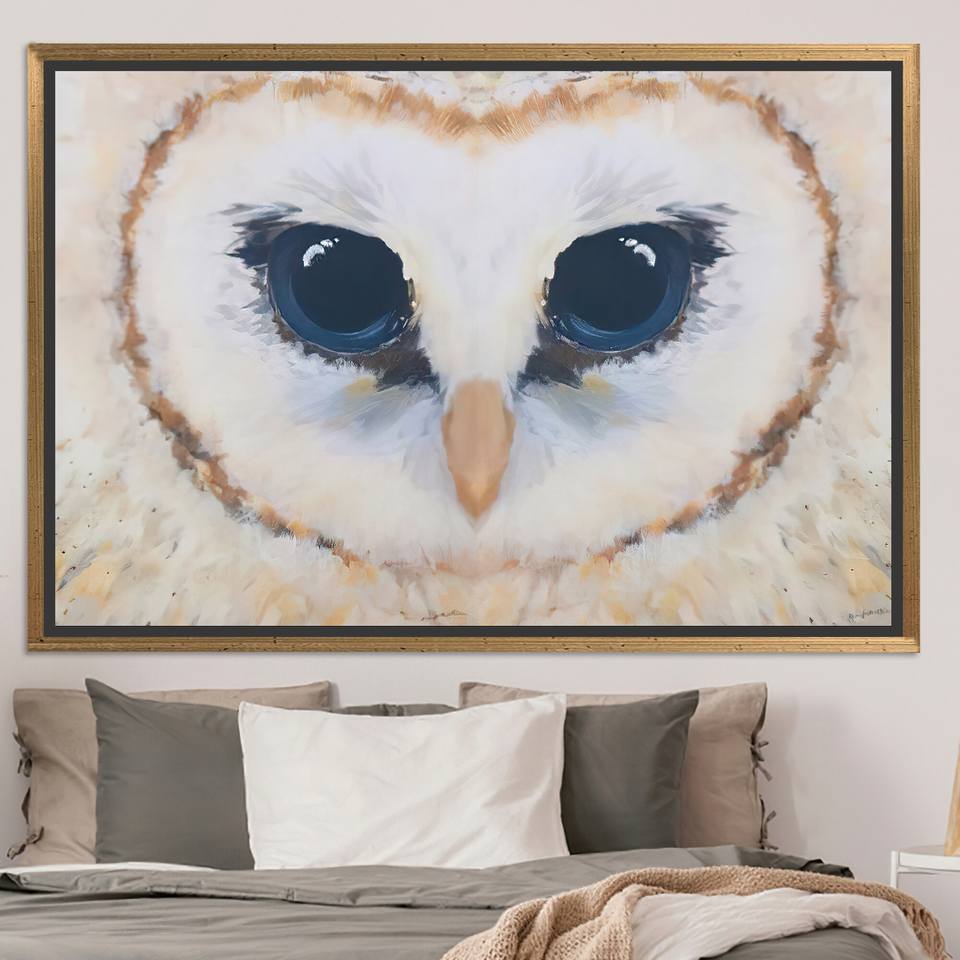 Elegant Abstract Owl Canvas Print: Modern Wall Decor,GOLD FRAMED CANVAS