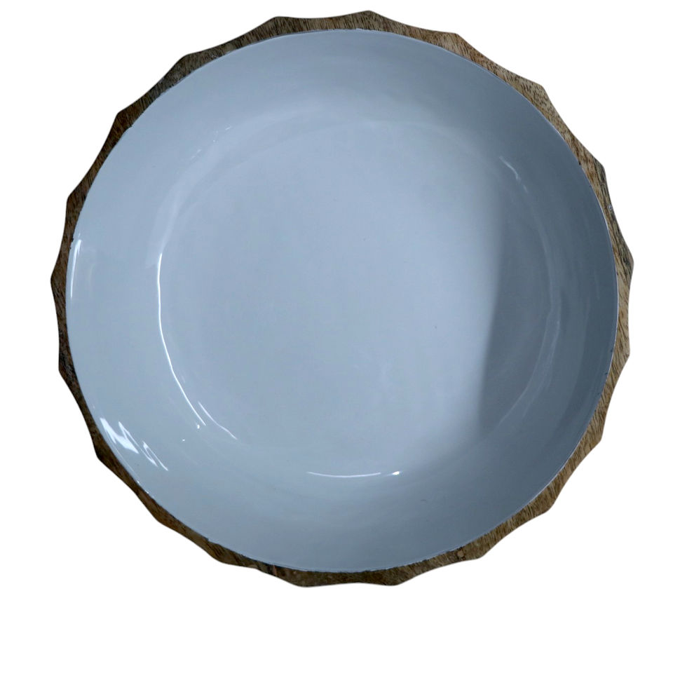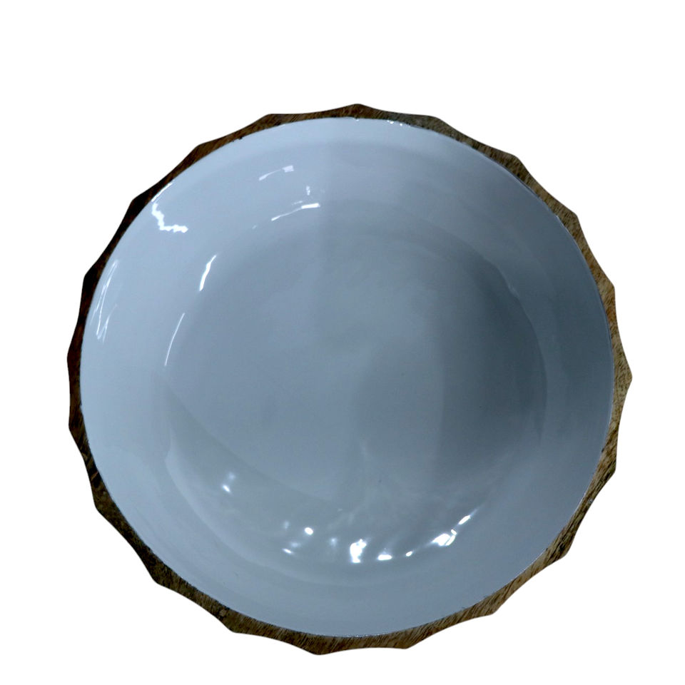 Elegant Acacia Wood Salad Bowl with Stylish Enamel Print Modern Design for Parties Sustainable Feature for Serving