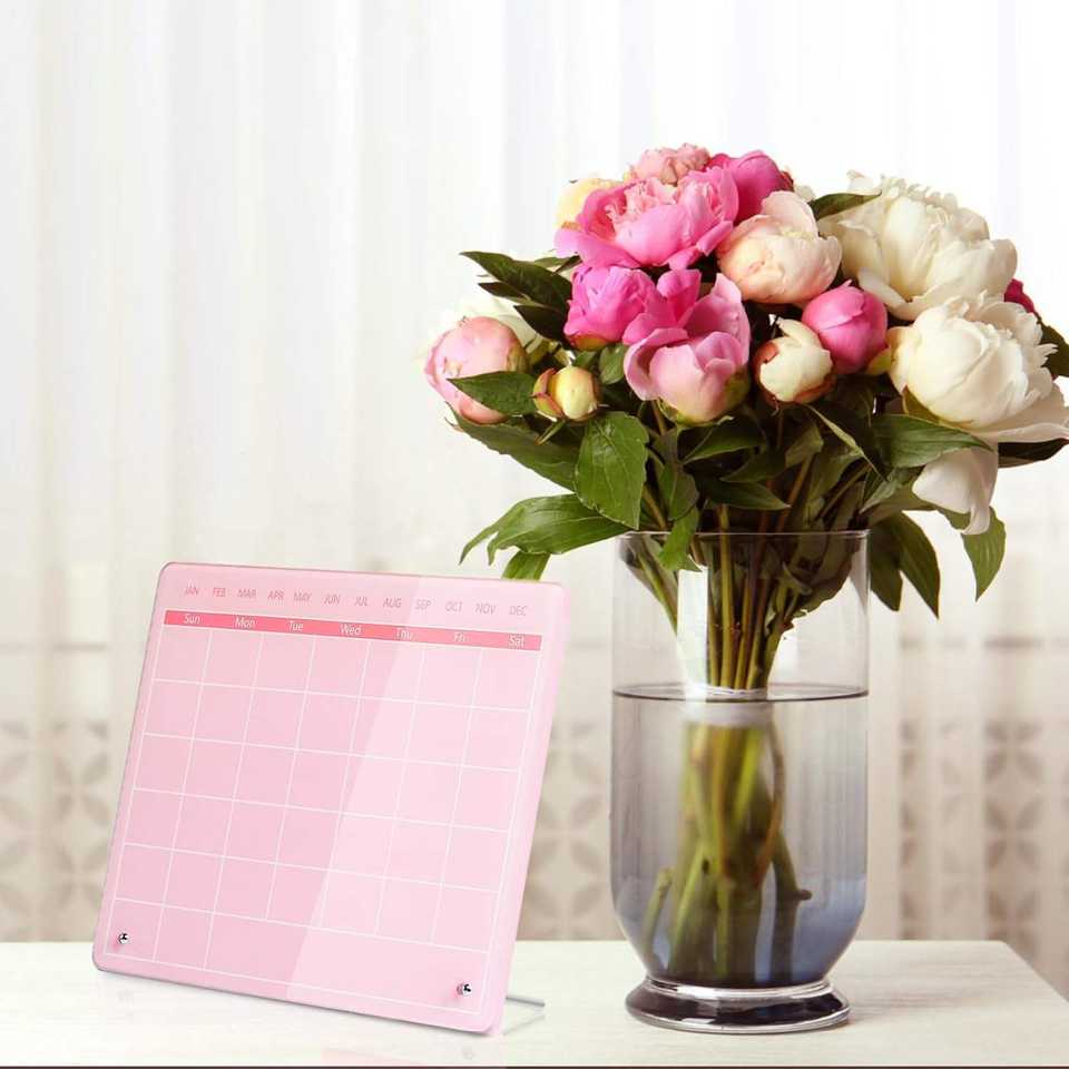 Elegant Acrylic Calendar for Desk Night Light Decoration Led Light Wood Base Desktop Transparent Acrylic Memo Board