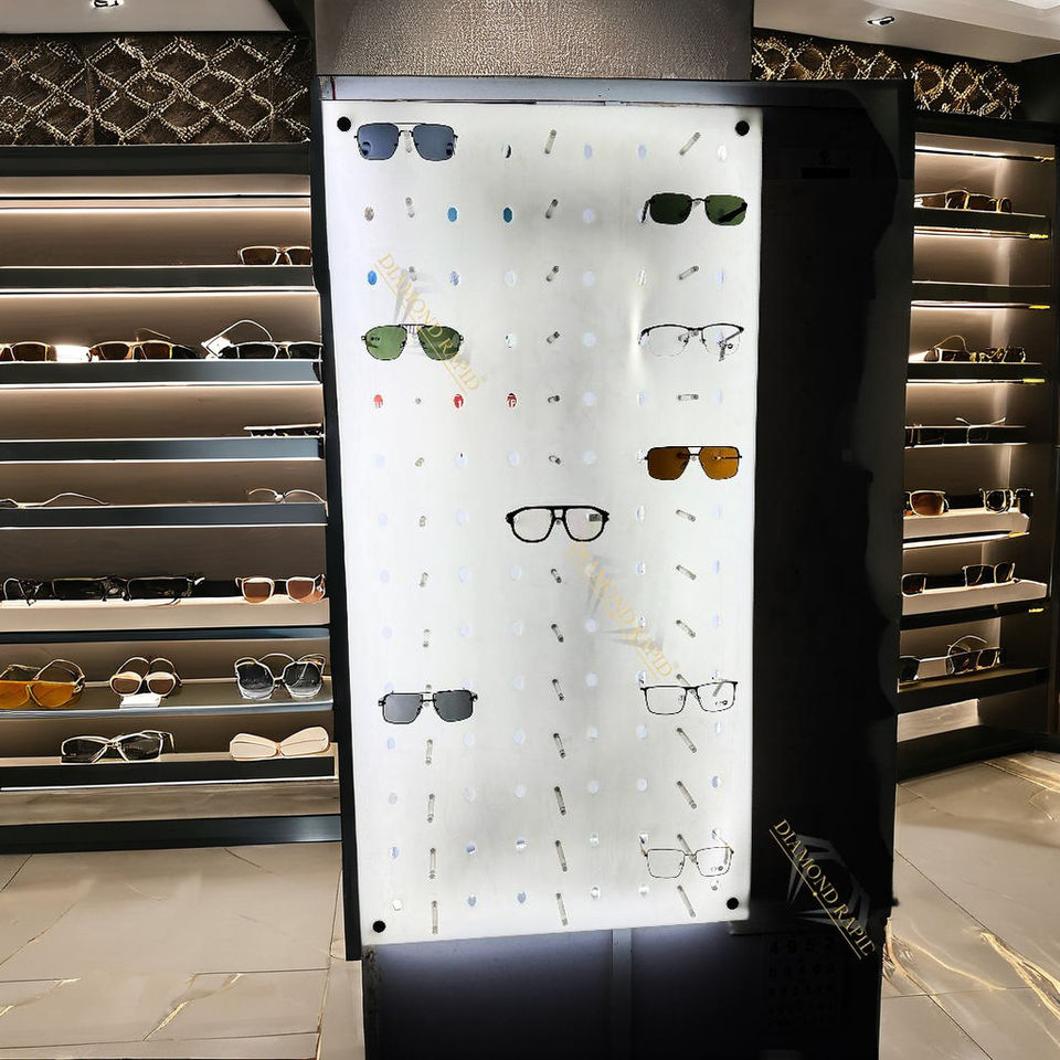 Elegant Acrylic and Wood Sunglasses Display Stand Wall-Mounted with Glass for Retail and Advertising