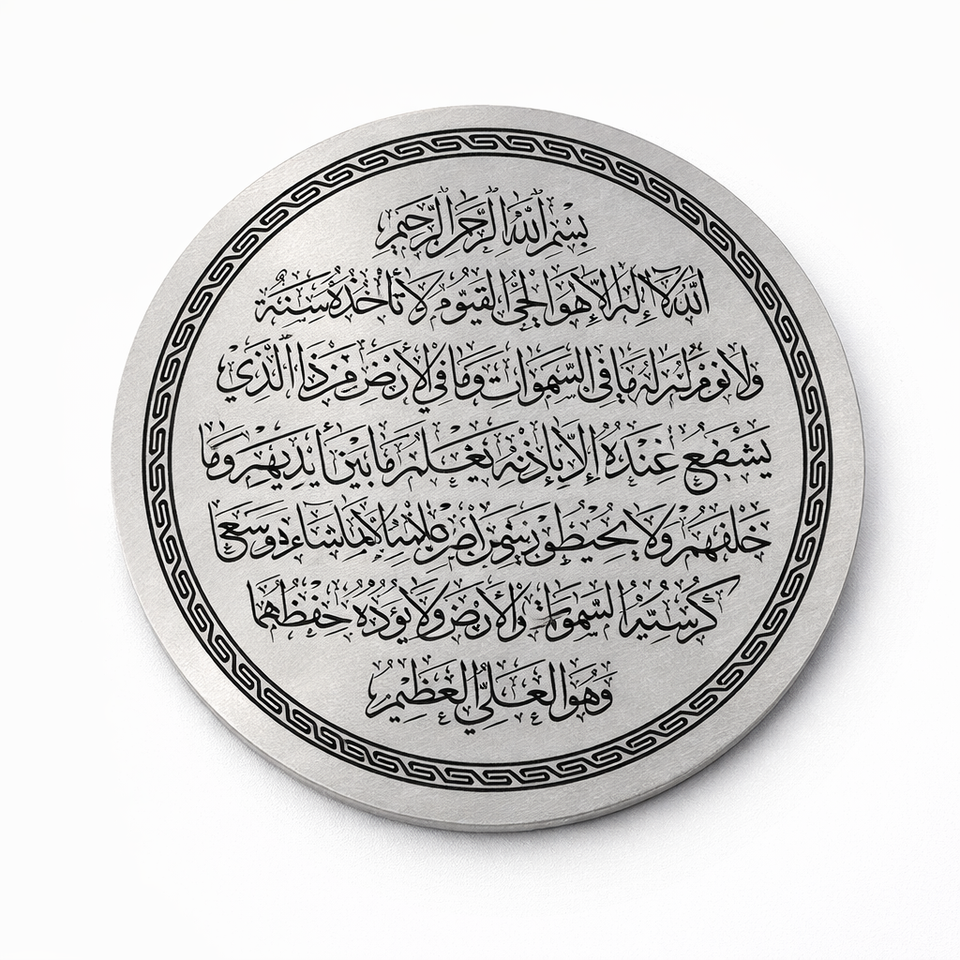 Elegant Aluminum Disc with Quranic Verses Arabic Calligraphy Islamic Design Coaster for Muslim Home and Office Luxury Religious