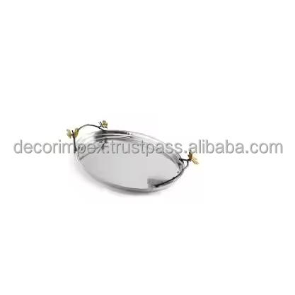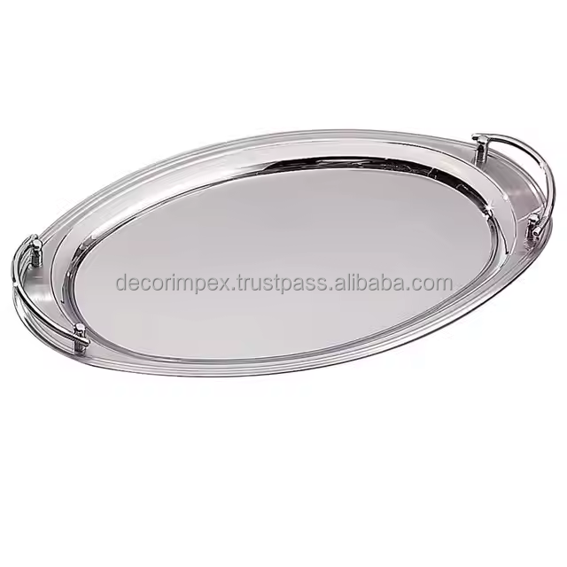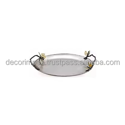 Elegant Aluminum Dish With Handles Polished Aluminium Serving Cast Emboss Designer Fancy Tray for Serving