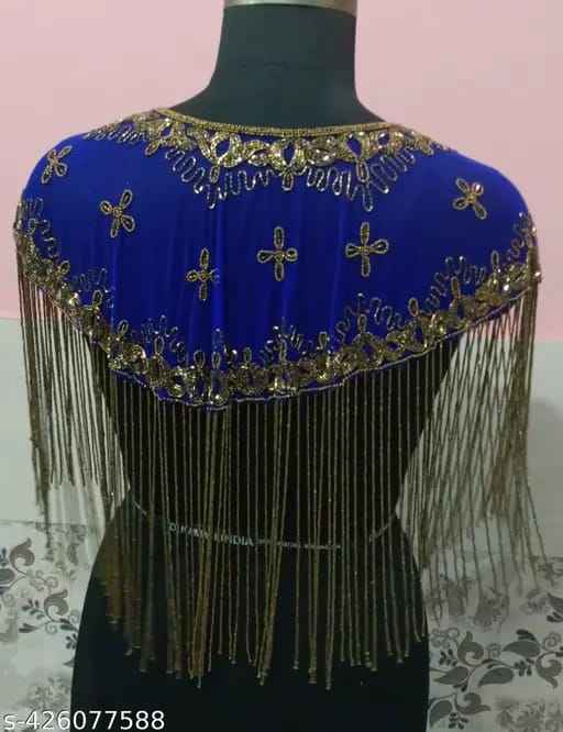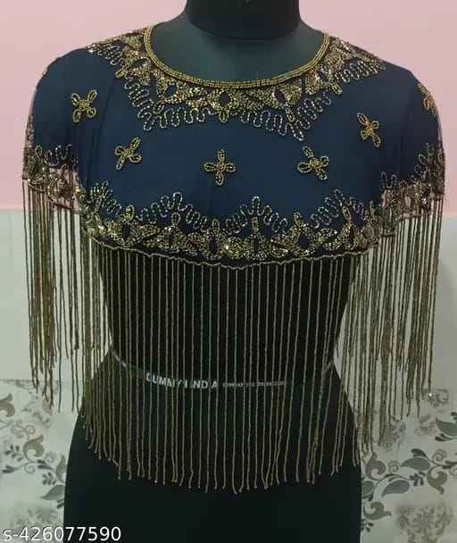 Elegant Anti-Static Organza Ladies Evening Party Dress with Beaded Cape & Embroidered Pearls Crystal Beautifully Handcrafted