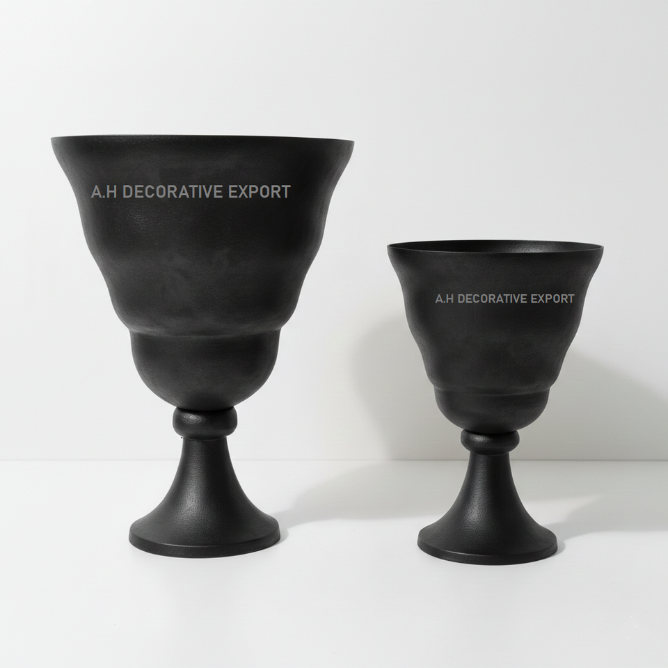 Elegant Modern Chrome Plated Aluminum Chalice Planter | Pedestal Urn for Garden Indoor Luxury Decor | Durable Flower Pot