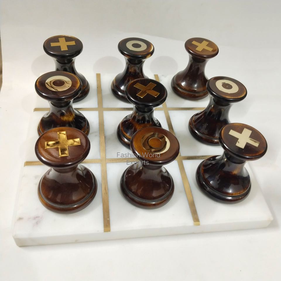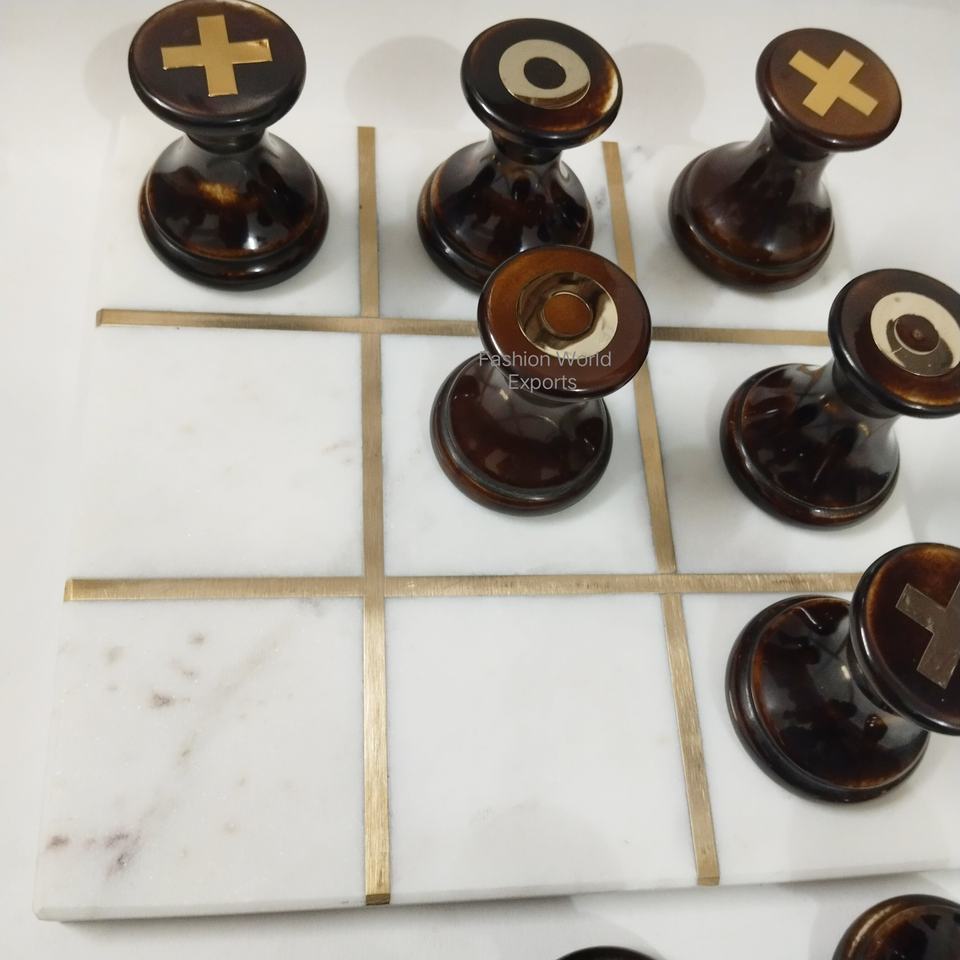 Elegant Antique Marble and Resin Tic Tac Toe Game Vintage O X Strategy Board Set Unique Classic Game Decor Gift for Home Office