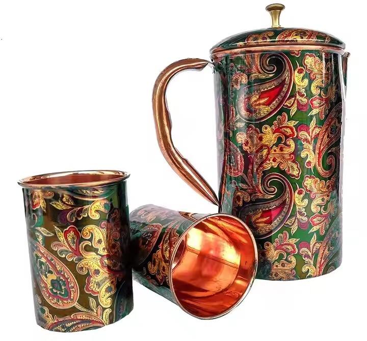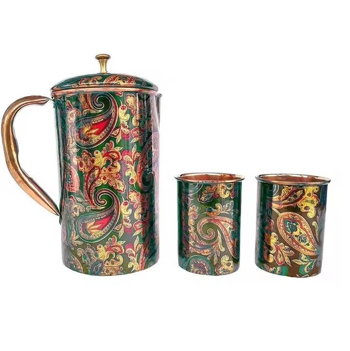 Elegant Antique Printed Hammered Copper Jug with Glass Set Ideal for Restaurant Party or Daily Use Available at Wholesale Price