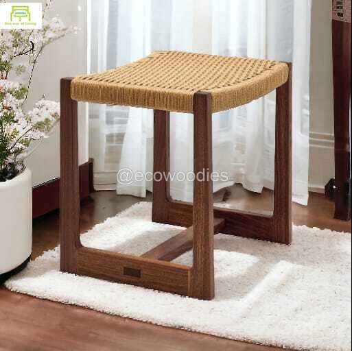 Elegant Antique Solid Wood Rope Knitted Child Stools Sturdy Small Shoe Changing Handmade for Kids or Adults