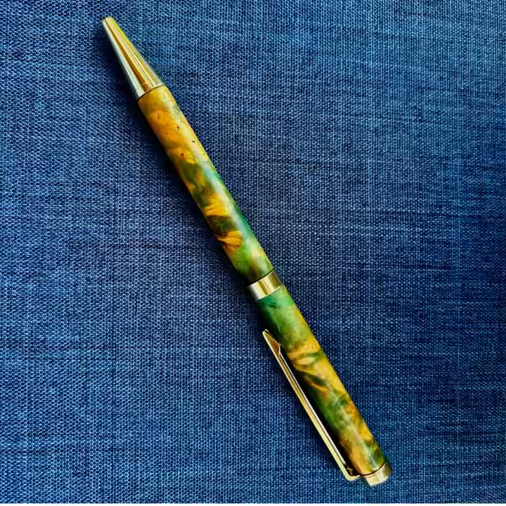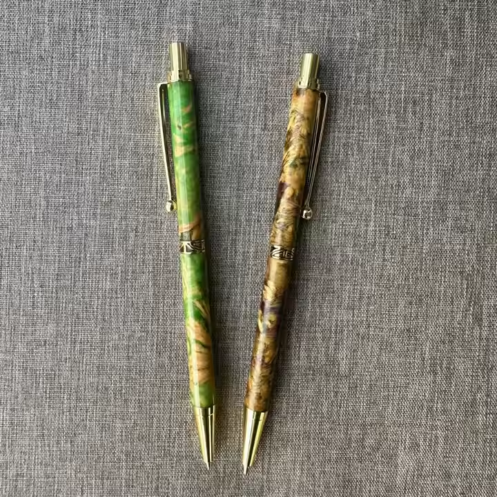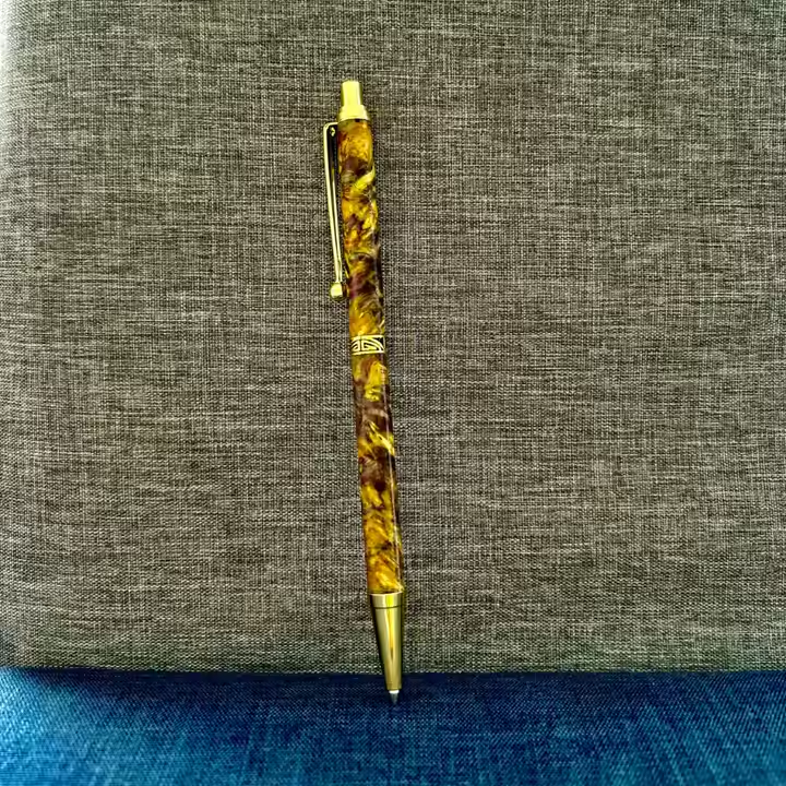 Elegant Artisan Pencil Crafted by Hand from Coffee Tree Burl Wood and Brass Components