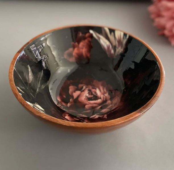 Elegant Artisan Printed Wooden Bowl Decorative Centerpiece for Dining Table Kitchen Serving and Contemporary Home Interior Decor